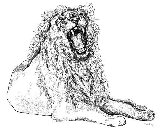Printable Art Roaring Lion Drawing 16x20inches Instant Etsy India